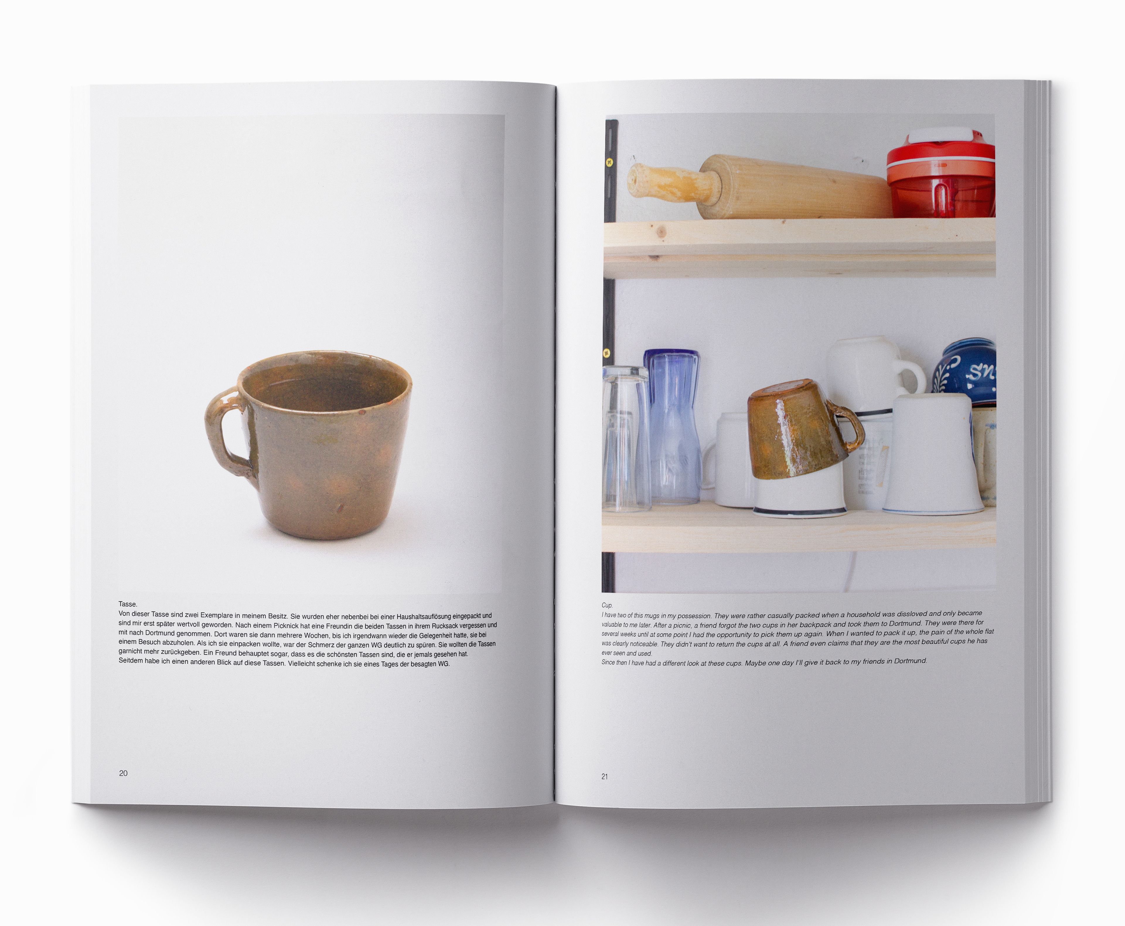 Welche Geschichten erzählen Objekte des Alltags? Wie verändert sich die Beziehung zu ihnen im Laufe der Zeit? Warum werden aus gewöhnlichen Alltagshelfern Lieblingsstücke? In einer fiktiven Ausstellung werden 10 Dinge aus der Küche betrachtet. Sie werden sowohl in ihrer alltäglichen Umgebung, als auch alleine und nur mit dem Fokus auf das Objekt selbst gezeigt. Sie stehen stellvertretend für Dinge die jede*r bei sich zuhause hat. Sei es eine Tasse, oder eine Zitronenpresse, die viele Leute gewöhnlich oder unbedeutend finden. Unabhängig von formalen und konzeptionellen Aspekten gibt es dennoch diesen einen Menschen, für den genau dieses Objekt unverzichtbar ist. Und das nicht nur aus Gründen der Funktionalität.